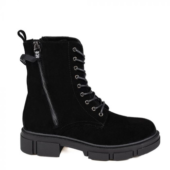 Botki na platformie z zamszową cholewką eko skóra czarne Sergio Leone