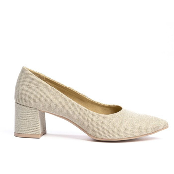 Czółenka na słupku w szpic brokatowe złote Optimo