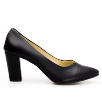 Czółenka skórzane na ozdobnym obcasie czarne Aga