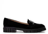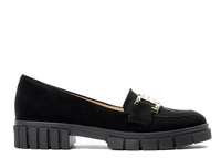 Mokasyny na platformie z okrągłą srebrną ozdobą zamszowe czarne Optimo 590
