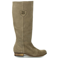 Kozaki traperki do kolana skórzane zamszowe taupe Optimo