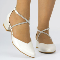 Czółenka ślubne na klocku skórzane perłowe białe Butdam