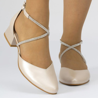 Sandały na szpilce taneczne skórzane perłowe beżowe Butdam SAN-005