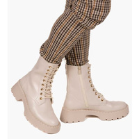 Botki workery skórzane na platformie beżowe Sempre