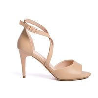Sandały na szpilce skórzane perłowe beżowe Butdam