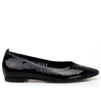 Baleriny skórzane lakierowane krokodyl czarne Sempre