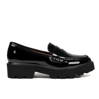 Mokasyny na platformie jednokolorowe lakierowane czarne 20822-3A