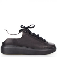 Sneakersy skórzane z białą wstawką czarne Sempre