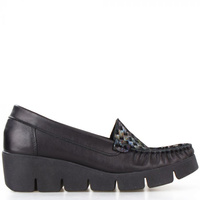 ( ilość produktów: 1155 )Mokasyny na koturnie skórzane z kolorowym wzorem czarne Sempre