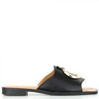 Klapki ze złotą obręczą z cyrkoniami czarne Potocki