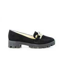 Mokasyny na platformie z ozdobą zamszowe czarne Optimo