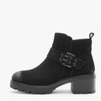 Botki skórzane nubukowe z ozdobną klamerką czarne Sergio Leone BT720