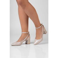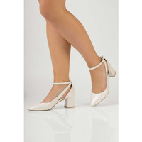 ( ilość produktów: 215 )Czółenka na klocku taneczne skórzane perłowe ekru Butdam