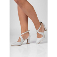 Czółenka ślubne na klocku skórzane perłowe ekru Butdam