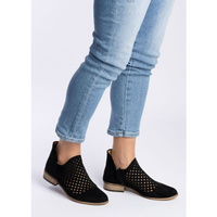 Czółenka niskie zamszowe z ozdobą czarne Optimo