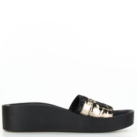 ( ilość produktów: 249 )Klapki skórzane zamszowe z mieniącym się złotym motywem czarne Sempre
