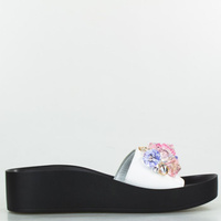 Klapki skórzane z kolorowymi cyrkoniami czarne białe Sempre
