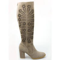 ( ilość produktów: 1154 )Kozaki do kolana na słupku skórzane z ażurowym wzorem cappuccino Optimo