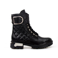 Botki skórzane na słupku z ozdobą czarne Sempre