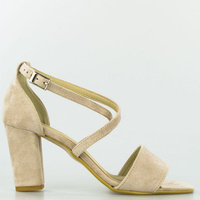 Sandały zamszowe ze złotym łańcuszkiem beżowe Optimo