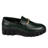 Mokasyny półbuty na platformie z ozdobą ciemnozielone Sergio Leone