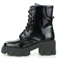 Workery na klocku skórzane lakierowane matowe czarne Sempre