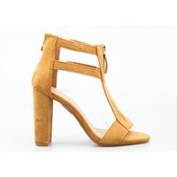 Sandały zamszowe na słupku z klamrą beżowe Estetino