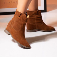 Botki kowbojki skórzane zamszowe na koturnie brązowe Butdam
