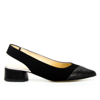 Czółenka na klocku skórzane ze wzorkiem czarne Aga