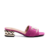 ( ilość produktów: 9 )Klapki zamszowe na ozdobnym złotym klocku fuksjowe Optimo KL-2