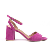 Sandały zamszowe na słupku fuksjowe Optimo