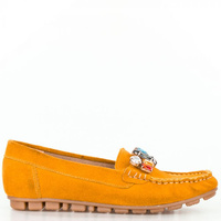 ( ilość produktów: 16 )Mokasyny skórzane zamszowe z kolorowymi ozdobami ciemne żółte Sempre