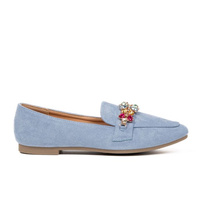Mokasyny zamszowe z kolorowymi cyrkoniami jasne niebieskie VG259