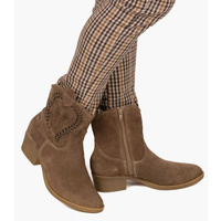Botki kowbojki ażurowe skórzane zamszowe cappuccino Optimo