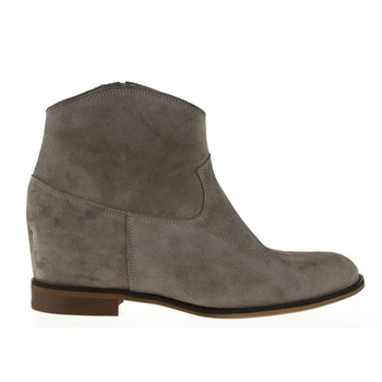 Botki na ukrytym koturnie skórzane welurowe taupe Sempre