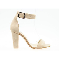 Sandały zamszowe na słupku z klamrą beżowe Estetino