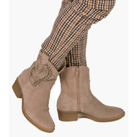 Botki kowbojki ażurowe skórzane zamszowe cappuccino Optimo