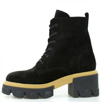 Workery na klocku na platformie wiązane skórzane welurowe czarne Sempre