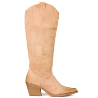 Kozaki kowbojki zamszowe w szpic do kolana beżowe
