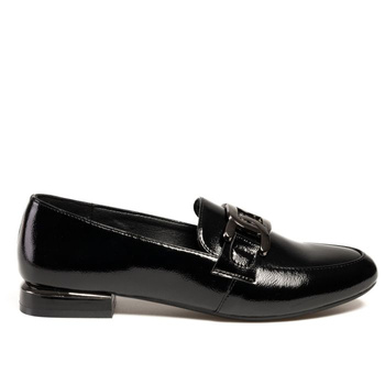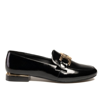 ( ilość produktów: 21 )Mokasyny ze złotą lustrzaną ozdobą lakierowane czarne Sergio Leone MK732