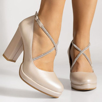 Szpilki na solidnym obcasie perłowe jasne beżowe Sergio Leone