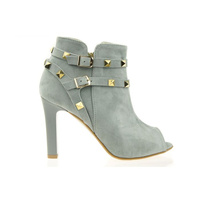 Botki na ukrytym koturnie skórzane welurowe taupe Sempre