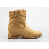 Botki kowbojki zamszowe ocieplane na koturnie beżowe
