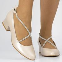 Czółenka z klamerkami z cyrkoniami skórzane perłowe beżowe Butdam Maja