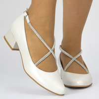 Czółenka z klamerkami z cyrkoniami skórzane perłowe białe Butdam Maja