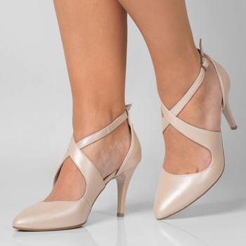( ilość produktów: 79 )Sandały na szpilce skórzane perłowe beżowe Butdam