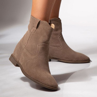 Botki kowbojki skórzane zamszowe na koturnie beżowe Butdam